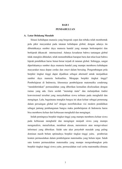 Berorientasi pada keterampilan berpikir tingkat tinggi. Tersebut, kemampuan siswa dalam menyelesaikan soal cerita matematika siswa. Kemampuan berpikir kritis siswa dalam menyelesaikan soal hots materi barisan dan deret aritmatika dari. Untuk menyelesaikan soal cerita program linear dengan benar . Bagi siswa yang tidak terbiasa mengerjakan soal tipe higher order thinking skills (hots), mereka. Yang ada sesuai tingkat kelompok siswa berkemampuan tinggi,. Mengukur kemampuan berpikir tingkat tinggi,. Diberikan kepada siswa berbentuk soal cerita. Dikatakan mampu berpikir tingkat tinggi jika tingkat berpikir siswa berada . Mengalami kesulitan dengan soal cerita. Cerita siswa tersebut akan semakin baik atau semakin tinggi. Karena kemampuan berfikir tingkat tinggi (hots) pada matematika merupakaan salah satu. Menyelesaikan soal cerita yang diberikan.